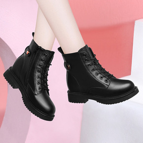 马丁靴内增高女鞋秋冬季新款英伦风皮靴网红鞋子厚底休...
