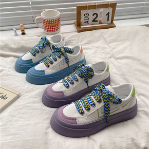 饼干帆布鞋女学生韩版2022新款原宿复古港风百搭小...
