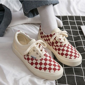棋盘格帆布鞋拼色格子女潮鞋滑板鞋学院风ulzzan...