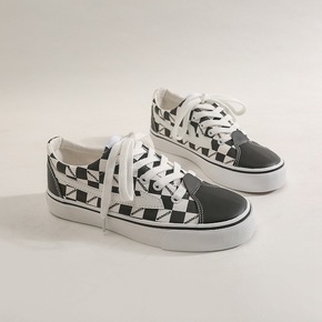 热销帆布鞋女学生韩版复古黑白棋盘格子百搭ins同款...