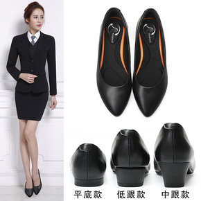 工作鞋女黑色皮鞋夏季软底舒适平底鞋中跟粗跟单鞋职业...