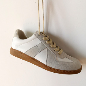 德训鞋女平底百搭真皮圆头细带单鞋复古小白鞋百搭德军...