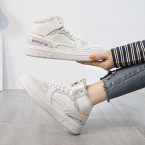 高帮鞋女真皮2021春季新款运动休闲小白鞋嘻哈 学...