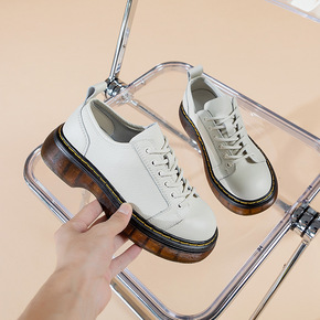 厚底英伦风小皮鞋女短脸秋冬2021新款休闲圆头单鞋...