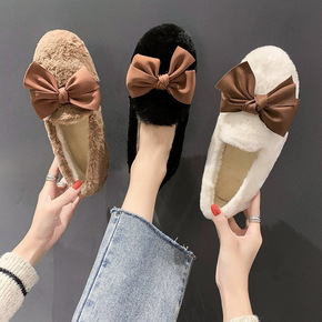毛毛鞋女冬外穿2021年新款秋季棉鞋平底蝴蝶结豆豆...