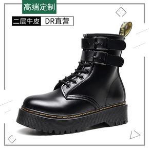 松糕厚底增高1460马丁靴女真皮8孔双排扣显瘦短靴...