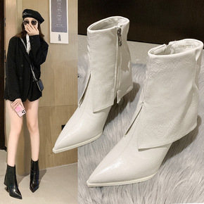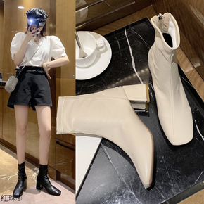 韩版裤管马丁靴女细跟气质高跟鞋2021年秋冬新款侧...
