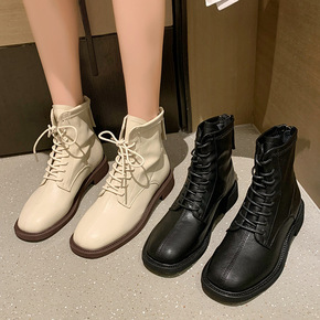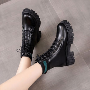 2021秋冬跨境坡跟马丁靴女外贸英伦平底短靴粗跟切...