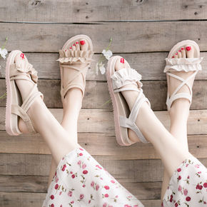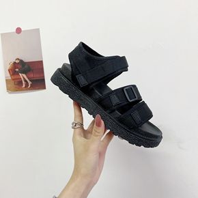 凉鞋女松糕休闲学生韩版流行新款夏原宿港风运动魔术贴...