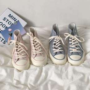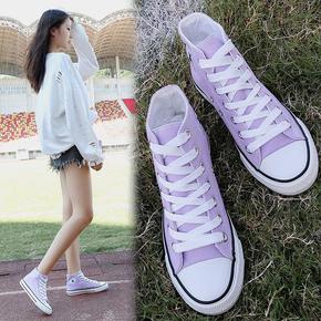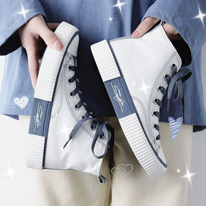 2022平底秋季中高帮帆布鞋女韩版百搭原宿潮学生运...