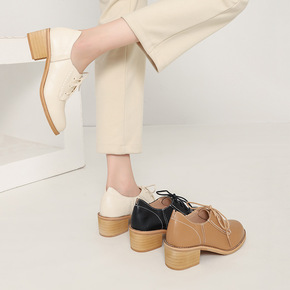 小语鹿春秋新款真皮厚底系带英伦风女单鞋时尚学院风小...
