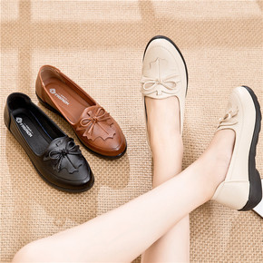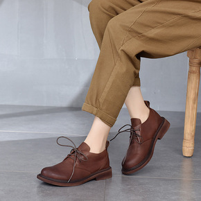 批发女鞋2021秋新款单鞋平底休闲皮鞋日常牛皮低帮...