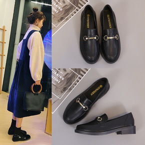 jk新款英伦风小皮鞋女平底乐福鞋圆头休闲女单鞋大码...