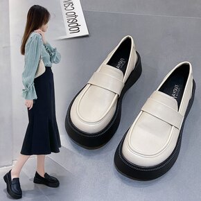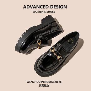 亮皮镜面皮乐福鞋漆皮小单鞋厚底小皮鞋新品jk日系女...