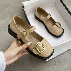 2020新款软底复古圆头森女真皮头层牛皮扣带平底女...