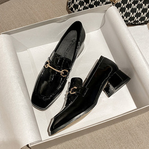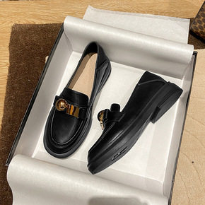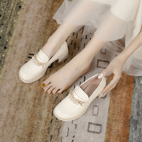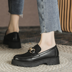 高跟鞋2021新款秋季乐福鞋潮女鞋粗跟豆豆鞋中跟英...