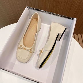 真皮单鞋女2021秋季新款软皮舒适百搭小皮鞋方头浅...