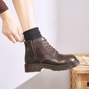 马丁靴女秋季英伦风2021新款透气舒适复古厚底短靴...