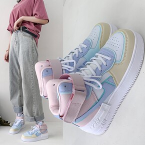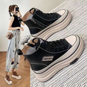 厚底混搭小白鞋2022新款春季运动休闲高帮女板鞋i...