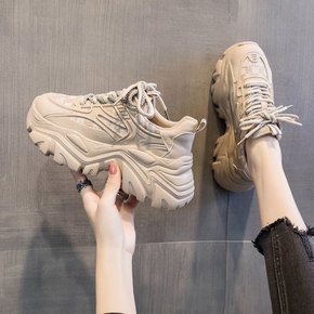 真皮网红厚底老爹鞋女ins潮2022春季新款韩版百...