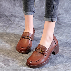 2021秋季新款松糕厚底粗跟小皮鞋女英伦学院风百搭...