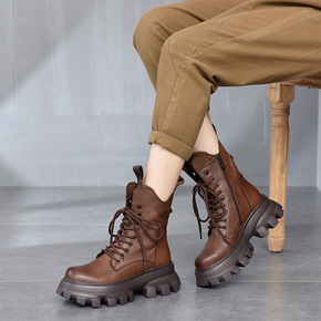 6孔真皮内增高马丁靴女2022秋冬新款短靴女粗跟加...