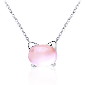 s925纯银粉晶项链 喵喵猫吊坠时尚韩版项饰小清新...