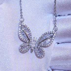 曹适日韩新款 ins少女心蝴蝶镶锆石项链 甜美简约...