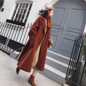 韩版双面羊绒呢子大衣女2021秋冬装过膝长款系带毛...