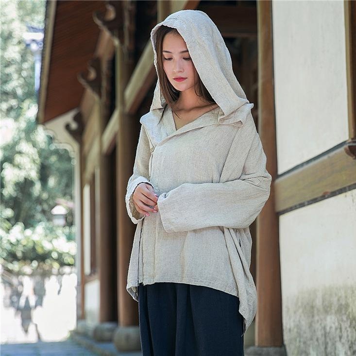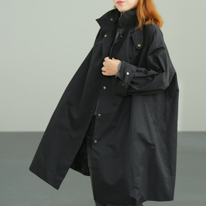 设计师小众日系宽松休闲茁茧双口袋拼接连帽中长款风衣...