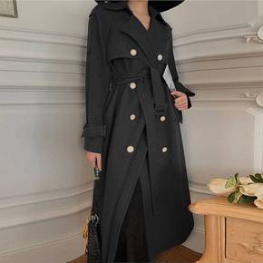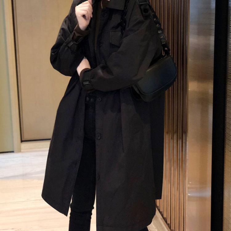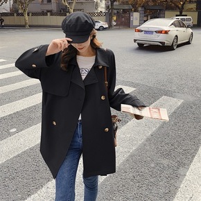 黑色风衣女外套2022春秋装新款韩系中长款小个子复...
