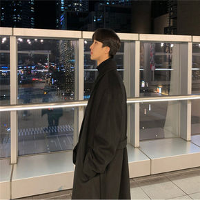 风衣男中长款秋冬新款韩版潮流宽松帅气毛呢大衣男士呢...