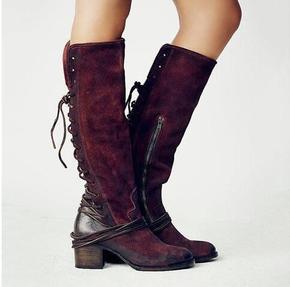 外贸款2018年秋冬新品粗跟高跟后绑带高筒靴女40...