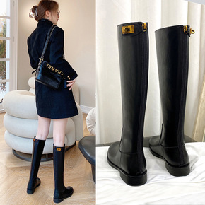 靴子女秋冬长筒靴女粗腿2021年新款不过膝高筒骑士...