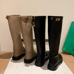 长筒靴女2021年秋冬新款厚底靴子冬季骑士靴长靴英...