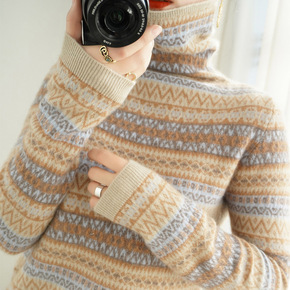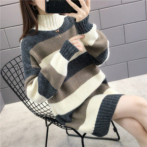 条纹高领毛衣女加厚宽松洋气内搭打底衫针织上衣秋冬2...