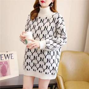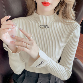 半高领字母刺绣套头针织衫2021秋冬新款修身内搭打...