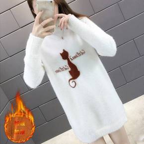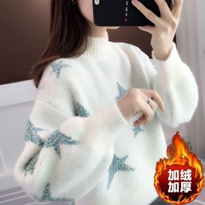 中长款水貂绒毛衣女2021年秋冬新款学生半高领加厚...