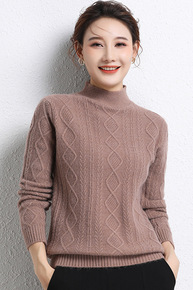 2021新款秋冬半高领麻花毛衣女士宽松显瘦纯色时尚...