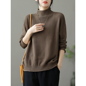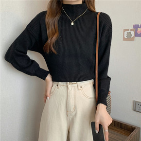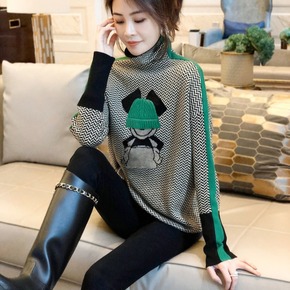 毛衣女秋冬季2021新款宽松针织上衣洋气半高领打底...