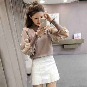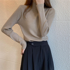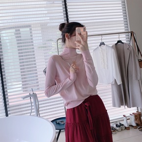 堆堆领毛衣修身春秋性感微透内搭打底衫高领套头长袖针...