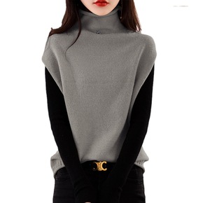 女士针织背心薄款套头保暖内搭打底背心高领纯色外穿针...