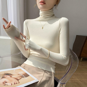 堆堆领打底衫女秋冬洋气修身高领白色长袖t恤女加绒加...