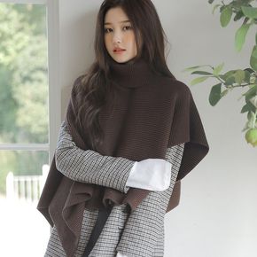 韩国东大门冬季新款不规则高领针织斗篷休闲保暖披肩围...