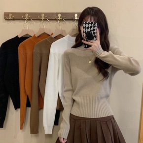 半高领中袖针织衫毛衣女秋季2021新款修身百搭五分...