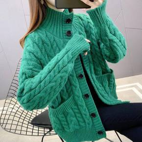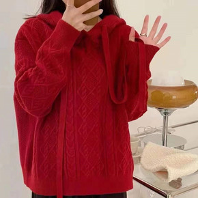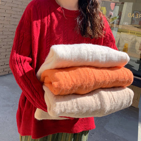 韩国2022秋冬复古慵懒风减龄休闲麻花纹宽松百搭毛...