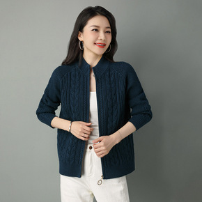 2022春秋新款针织衫打底衫女麻花纯色针织外套女拉...