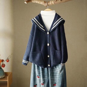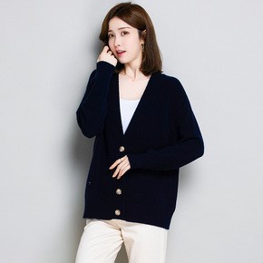 日系洋气V领毛衣女宽松外穿春秋针织开衫2022新款...