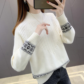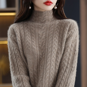 2022秋冬新款半高领羊绒衫女时尚麻花毛衣外穿针织...