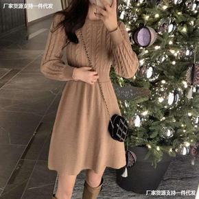 法式温柔风小众麻花纹高腰毛衣A字裙女秋冬小个子打底...